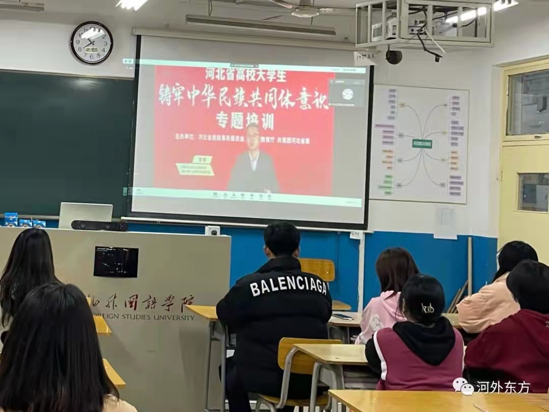 2021年12月9日晚上七点,东方语言学院20、21级各班班委以及团总支干事参加了关于“中华民族共同体意识”为主题的腾讯会议。