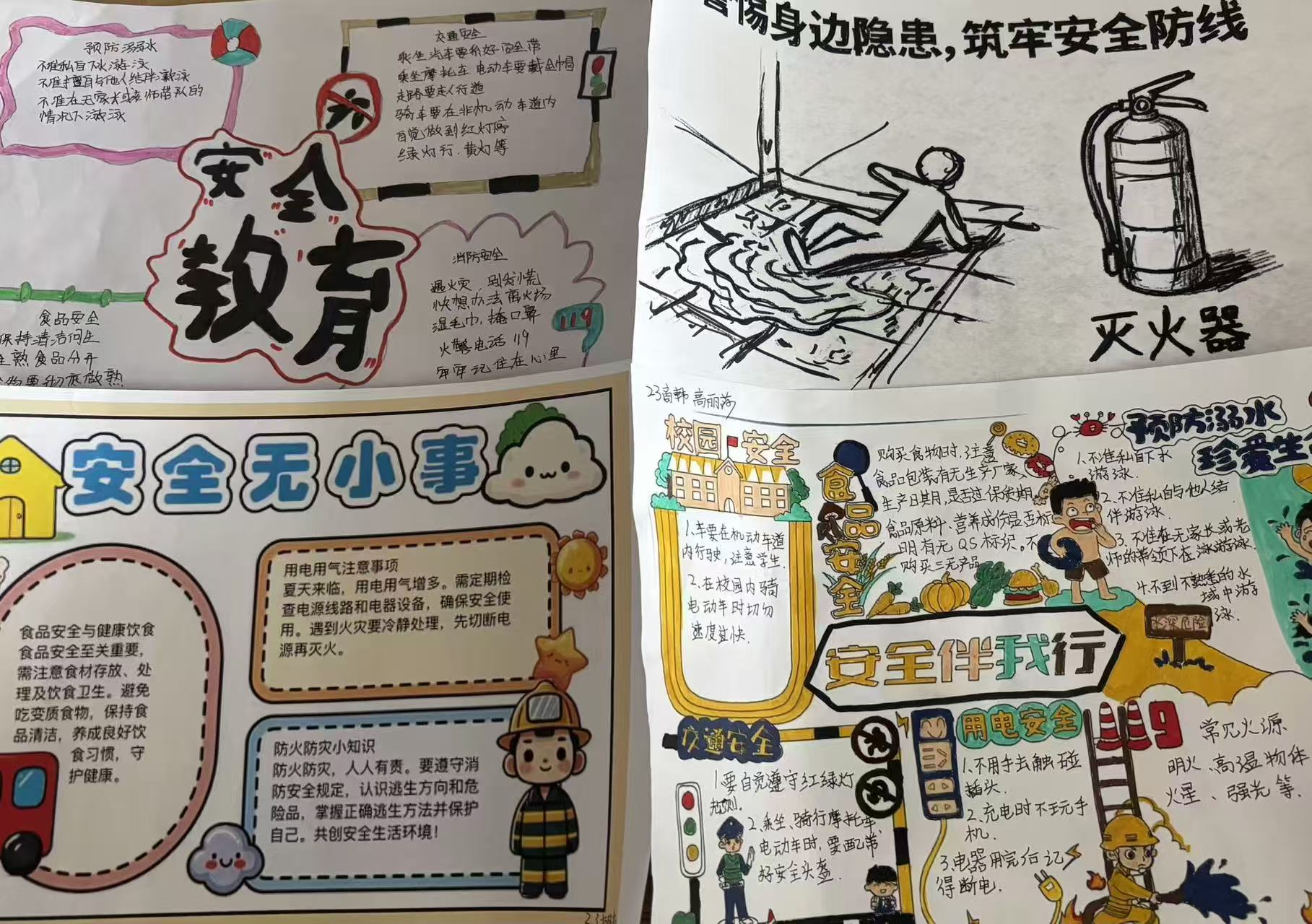 活动自启动以来,得到了各级同学的积极响应和热情参与。同学们利用课余时间,围绕主题,精心搜集资料,巧妙设计版面。一幅幅内容丰富、设计精美、色彩鲜明的手抄报作品,凝聚了同学们对安全知识的深刻理解和独特创意。作品内容涵盖了消防安全、交通安全、食品安全、防溺水、防校园欺凌、网络安全、心理健康以及日常生活中的各类潜在风险点等多个方面。同学们用手中的画笔和绚丽的色彩,图文并茂地揭示了隐藏在身边的安全隐患,生动阐述了“安全无小事,防患于未然”的重要性,并提出了诸多实用的防范措施与应对建议。