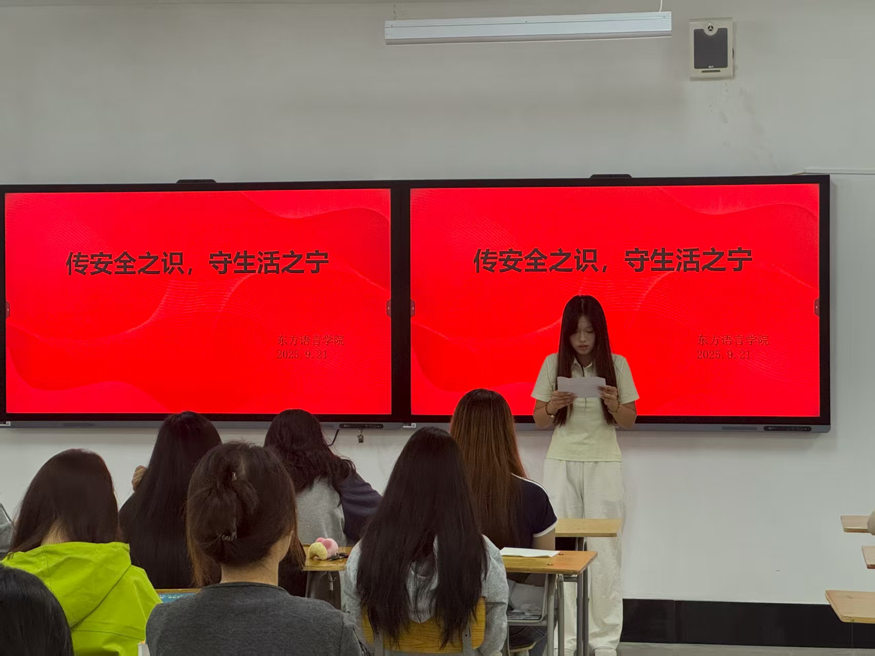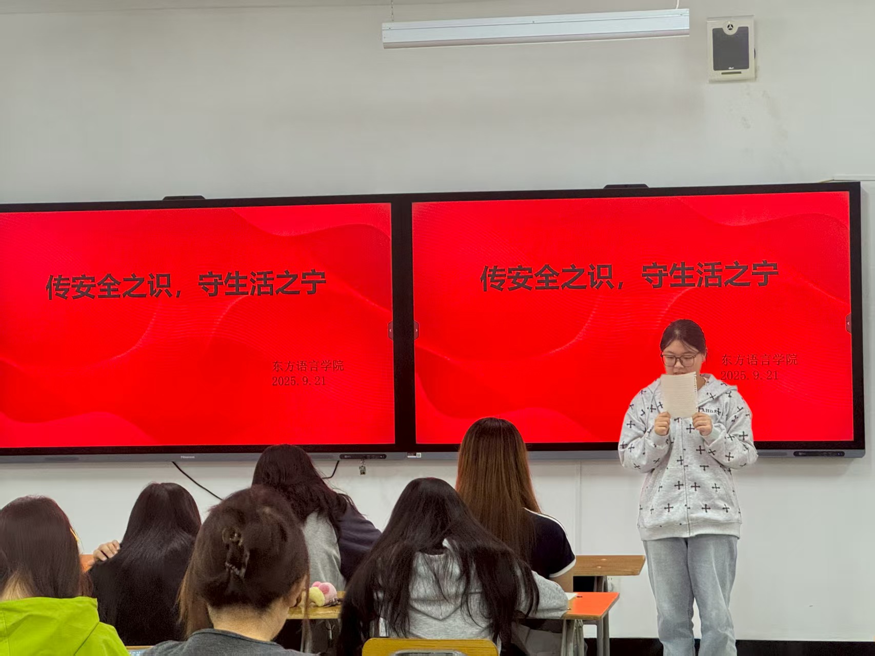 为强化学生安全意识,筑牢校园安全防线,2025年9月21日,东方语言学院“传安全之识,守生活之宁”主题征文活动在618教室圆满举行。来自各年级的9名选手围绕“传安全之识,守生活之宁”主题,以生动的语言、鲜活的案例传递青春正能量。