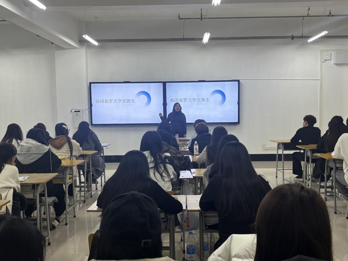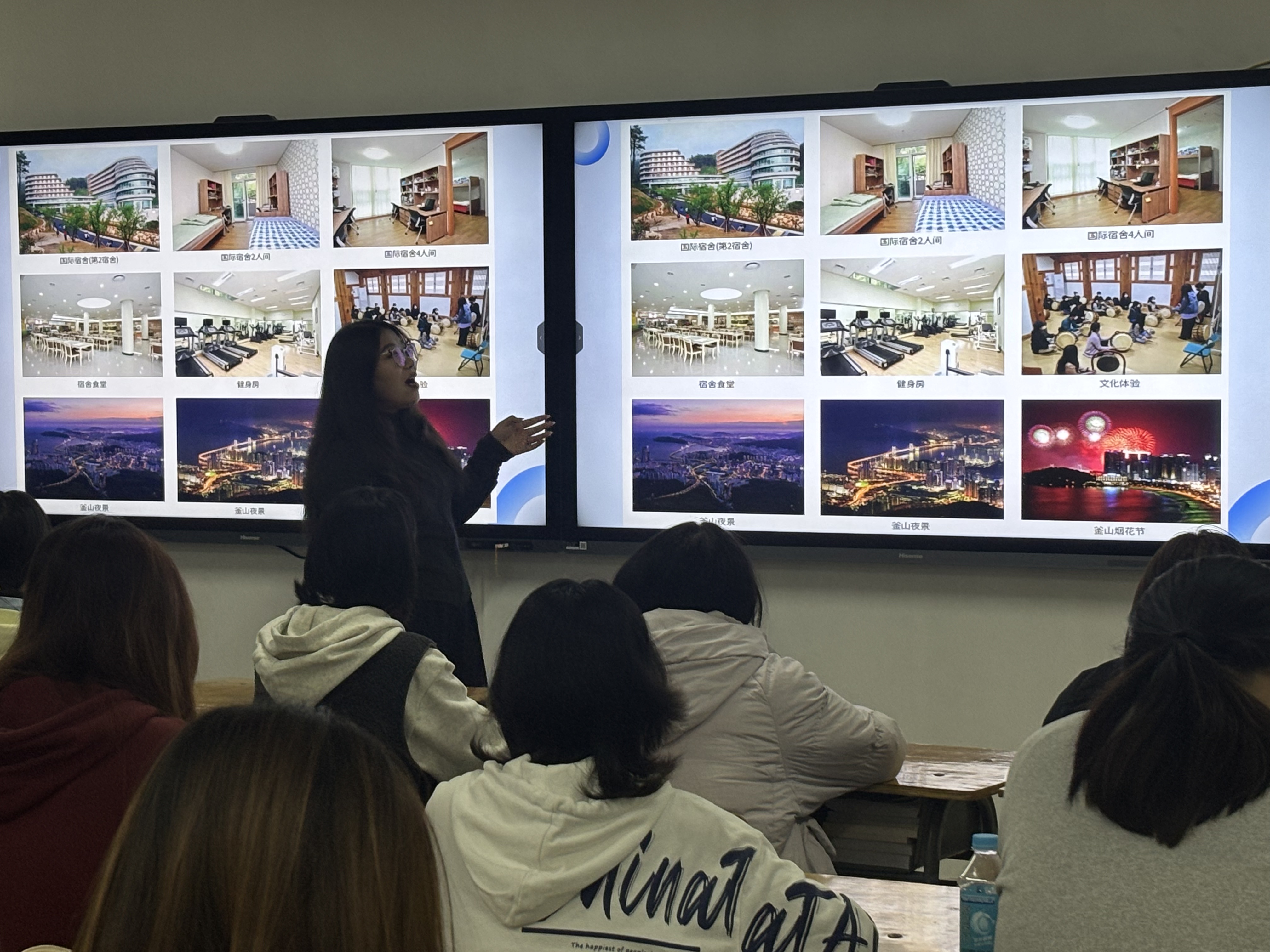 2025年10月20日19:10,福远楼502-504为2024级朝鲜语本科班进行新罗大学交换生项目宣讲。