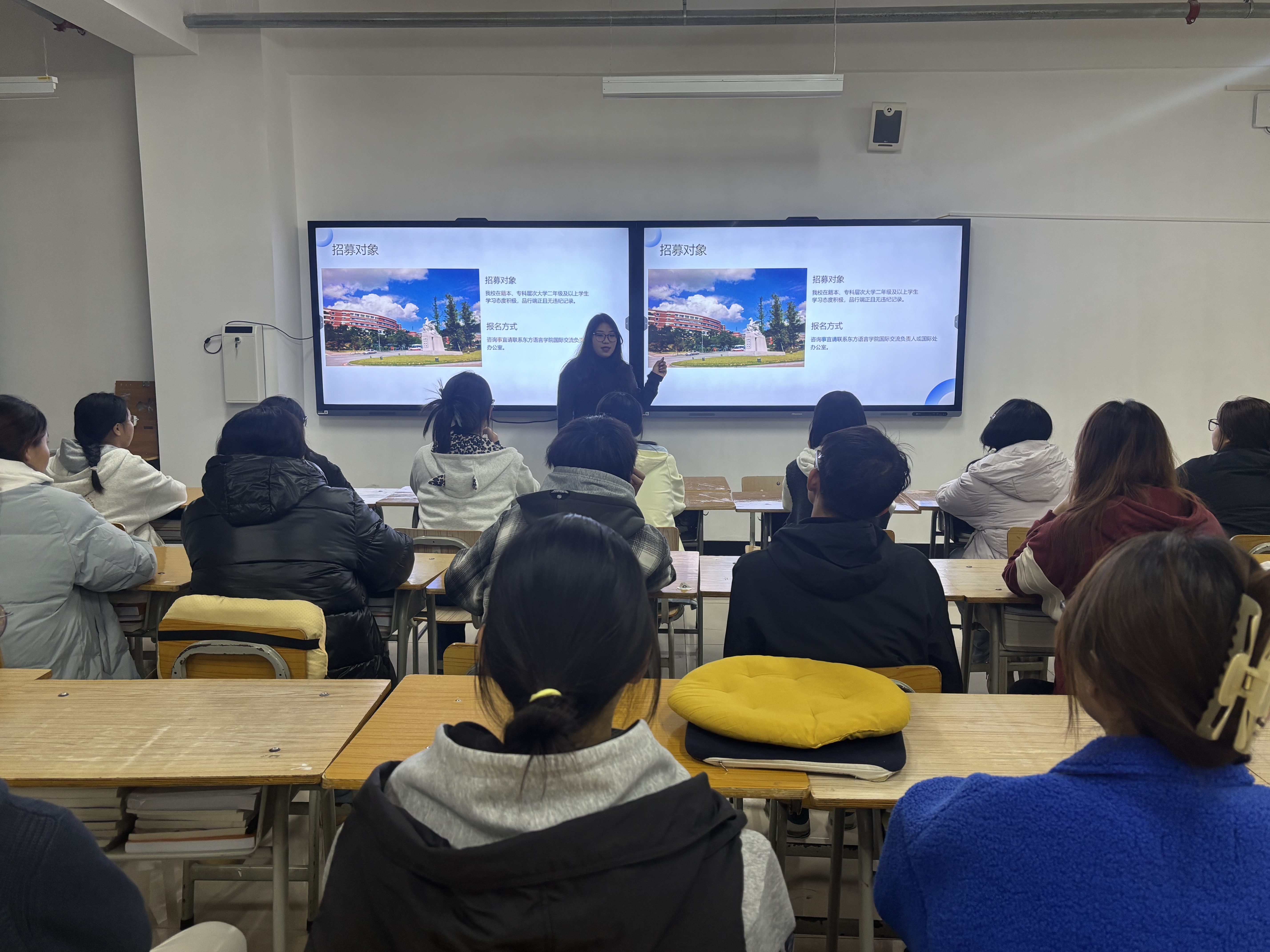 2025年10月20日19:45,福远楼608-610为2024级应用韩语专科班进行新罗大学交换生项目宣讲。