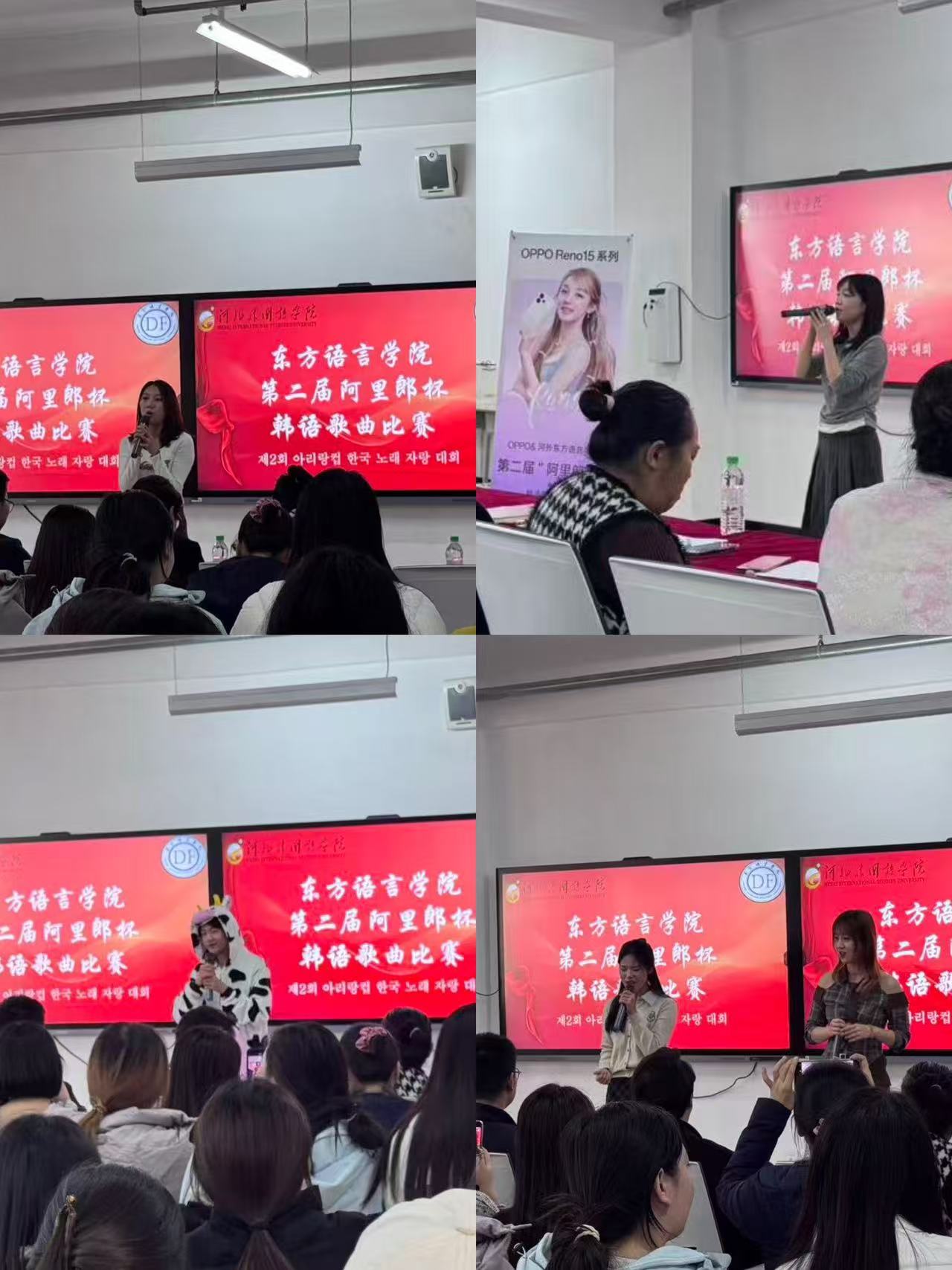 11月19日下午四点,由河北外国语学院东方语言学院主办、OPPO独家赞助的“韩韵欢歌·声动校园”阿里郎杯韩语歌曲比赛在福远楼618精彩上演。东方语言学院参赛选手同台竞技,以歌为媒,用优美的旋律、地道的韩语与真挚的情感,为现场师生呈现了一场兼具听觉享受与文化内涵的校园盛宴。
