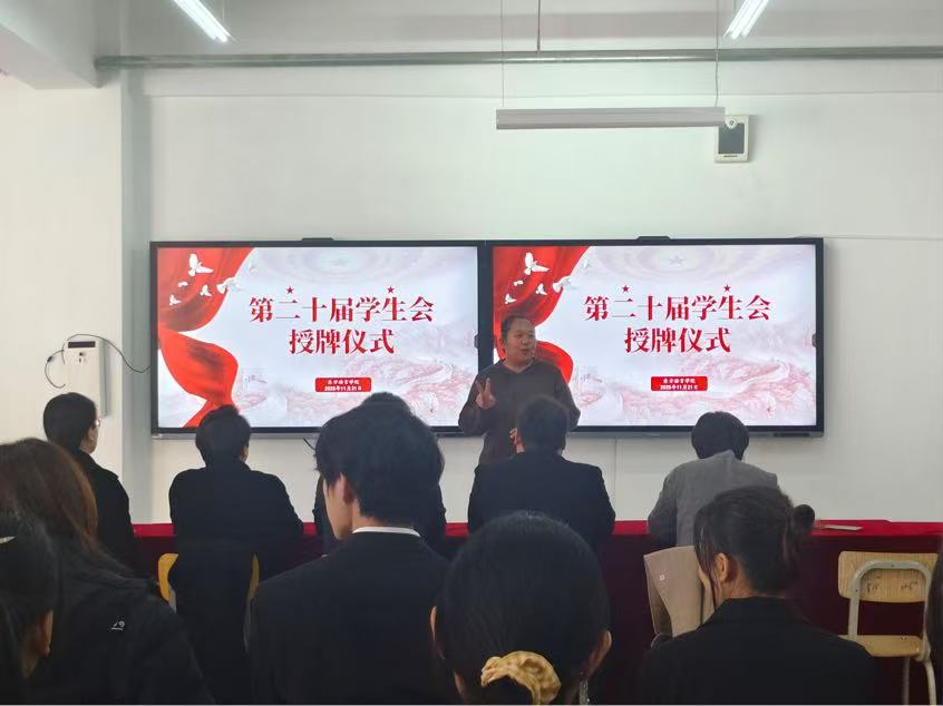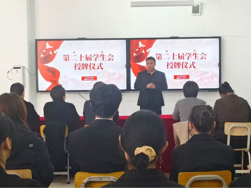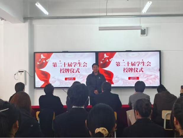 展望未来一年,东方语言学院院级学生组织的工作任重道远。为进一步提升学生干部的工作水平与素质,助力他们更好地履职尽责,2025 年 11 月 21日下午,河北外国语学院第 20届学生会授牌仪式在福远楼 618 教室顺利举行。东方语言学院多位领导与老师莅临本次活动.