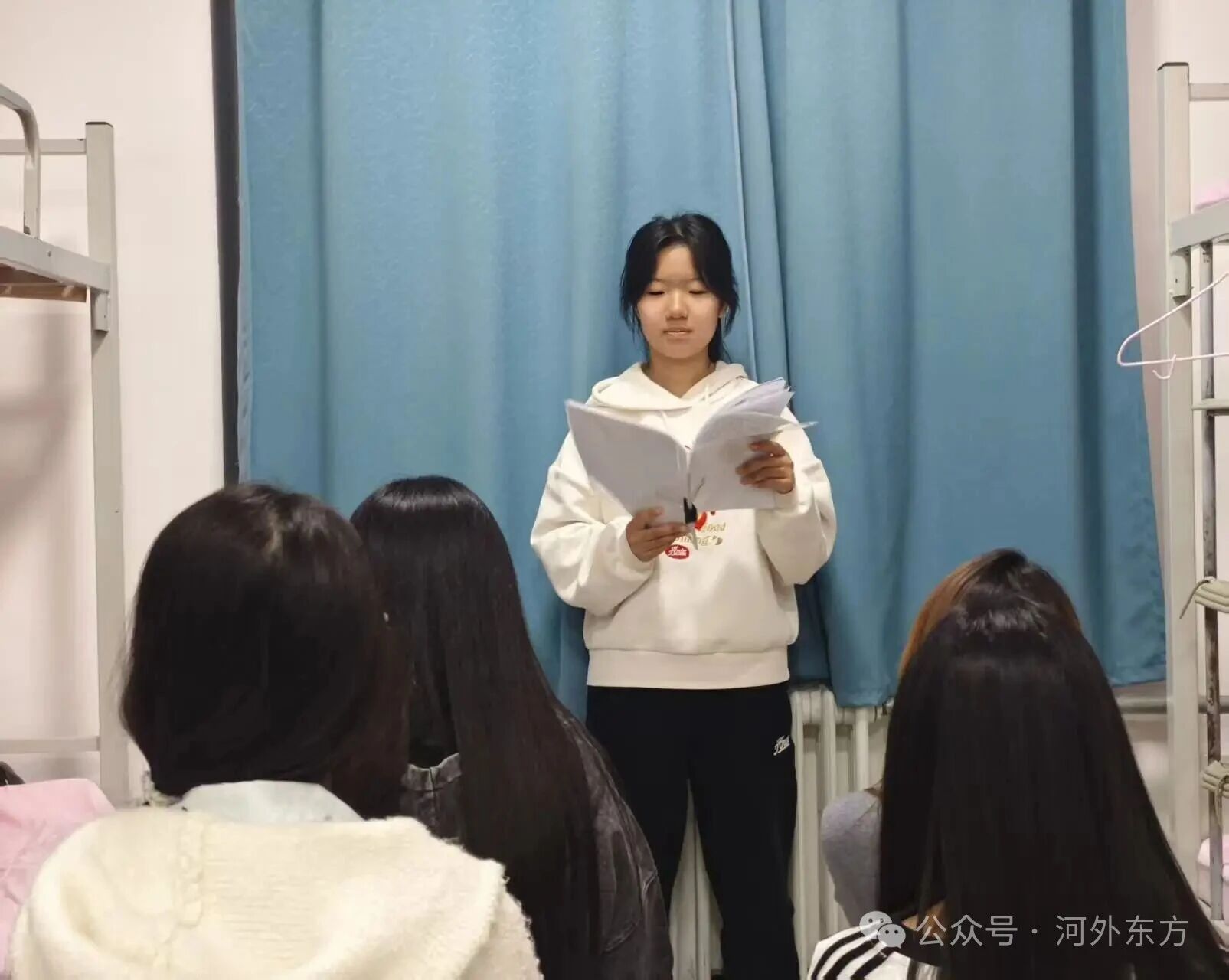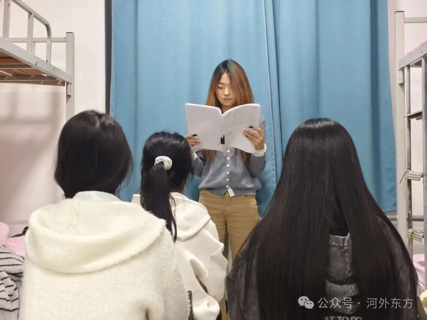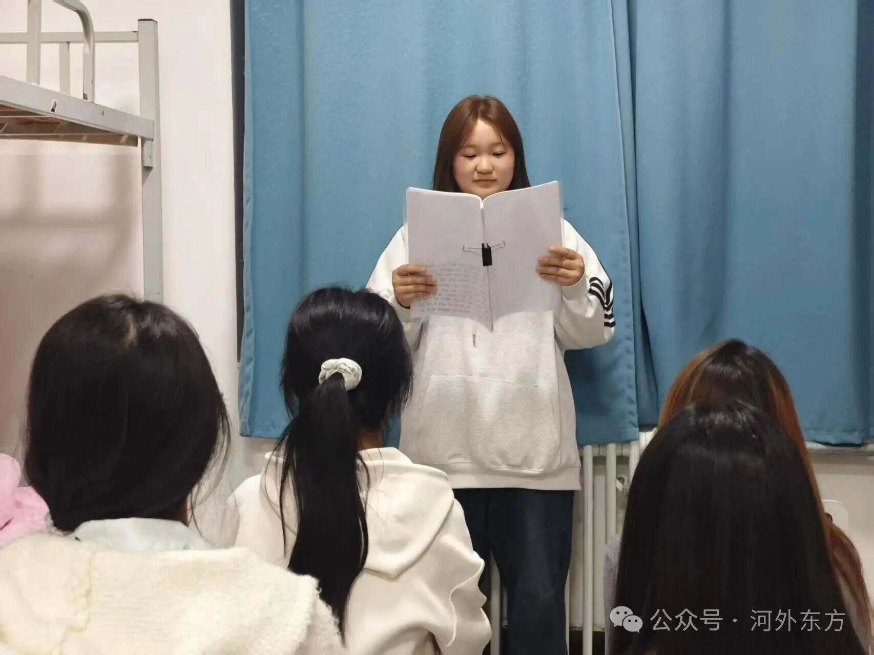 宿舍是青年学子践行文明理念、扛起集体责任的重要阵地,是校园精神文明建设的关键单元。2025年12月7日晚自习19时,东方语言学院于女生宿舍10号公寓楼506宿舍举办“文明驻寝,青春担责”——“青年责任与宿舍文明”主题演讲活动,24级及25级的女生宿舍均选派选手与观众参与,一场关于宿舍文明与青年担当的思想碰撞在此展开。